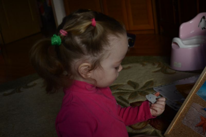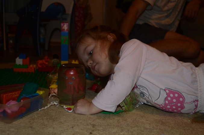 Поиграли с манкой- думала дочка будет просеивать бусинки - морских жителей, а она наоборот- прятать