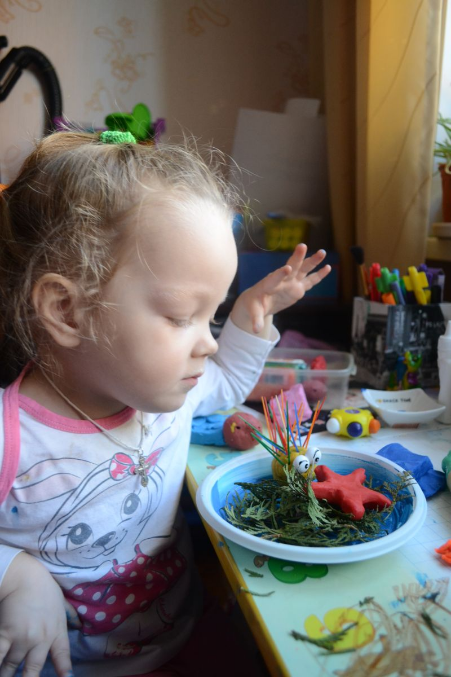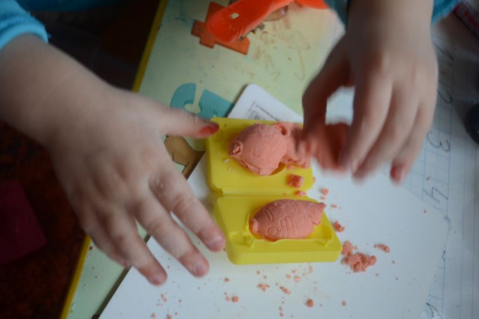 Я налепила из плавающего пластилина рыбок, ох как дочке понравилось возиться с ними