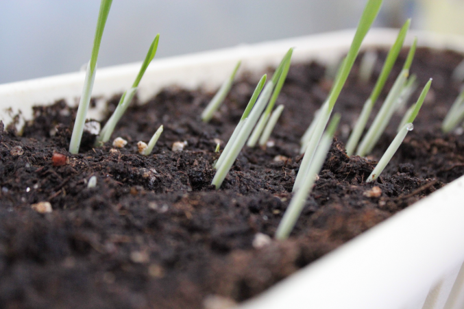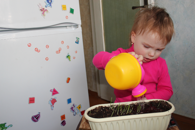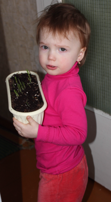 Посадили мы травку в начале прошлой недели в рамках цветочной ТН ! София каждый день поливала землю в горшке, а когда впервые увидела ростки была очень удивлена, ей