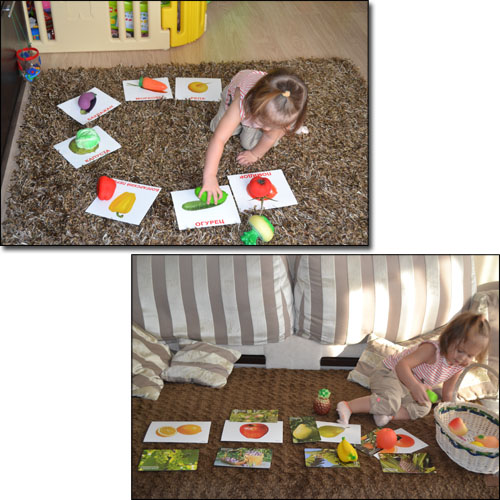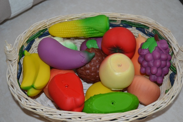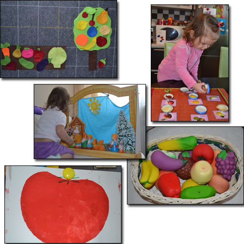 У нас есть вот такие наборы овощей и фруктов фирмы Огонек. С ними и играли целую неделю.