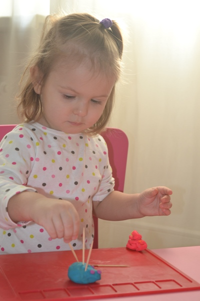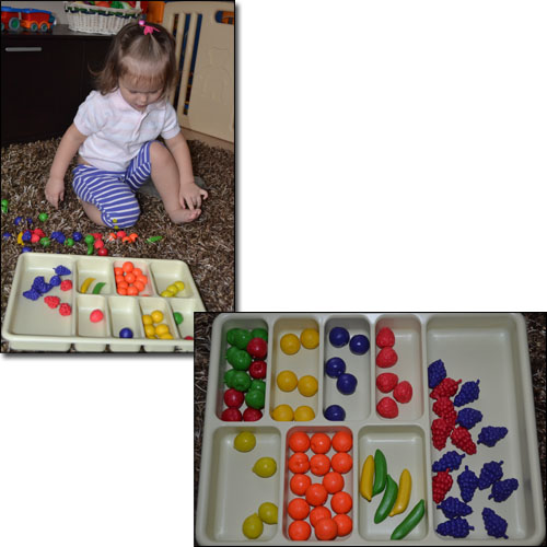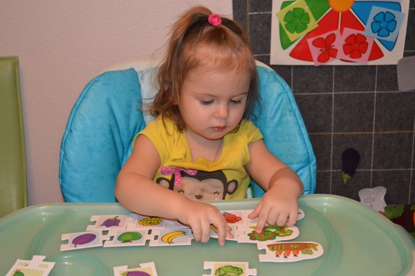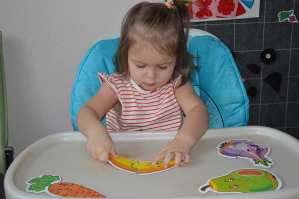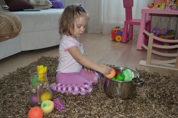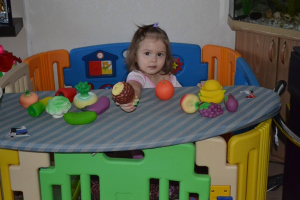 А вот играть в магазин понравилось даже очень. На вопрос сколько стоит какой-нибудь фрукт или овощ, Настя всегда отвечала "Один".