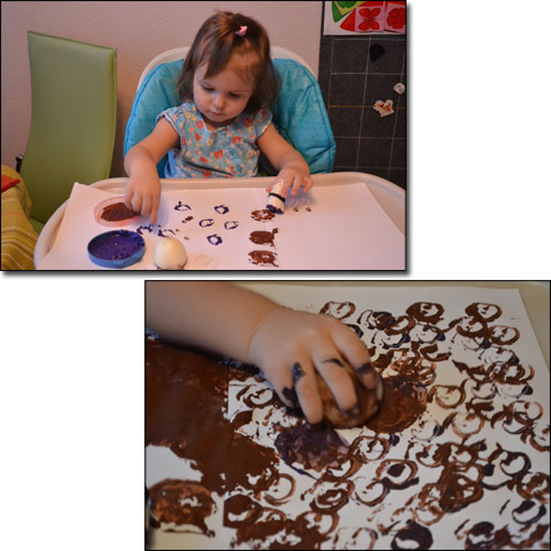 Попробовали рисовать капустным листом и луком. Очень весело провели время, надо повторить
