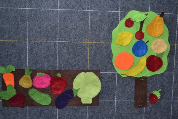 Как раз для нашего коврика сшила я фетровые овощи и фрукты по выкройкам Евгении.