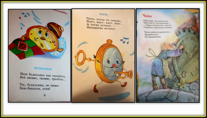 Повторяли, какие виды часов бывают -будильники, механические,электронные, наручные, песочные...В книжке ещё подсмотрели, что бывают маятниковые,башенные,настенные.