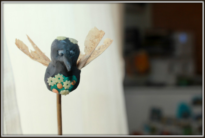 А ещё, живёт у нас вот такая кукушка теперь, которая время от времени сообщает нам, который час)) Первоначально она была голубем, по мнению Дрюни. Но после "часовой" темы, предполагаю, останется кукушкой)))