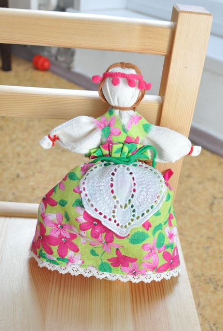 Решила я сделать для дочки еще одну куколку. Народную игровую. Посмотрела мастер-класс в интернете. И сшила. Традиционно не используются колющие и режущие предметы (иглы и ножницы) при создании народных кукол, но я использовала, конечно. Все пришила намертво, чтоб дочка не оторвала ничего и не превратила куклу обратно в кучку лоскутков.
