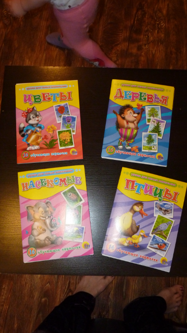 3. Карточки "Проф-пресс": Цветы, деревья, насекомые, птицы. Просто замечательная серия за такие смушные деньги (50р). Есть все основные цветы, птицы и т.п. очень реалистично нарисованны. Знала бы про серию раньше не тратилась бы на дорогущую "мир на ладошке".