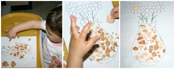 Делали аппликацию.На вазу клеили яичную скорлупу,на цветы-манку.Понравилось очень ребенку.