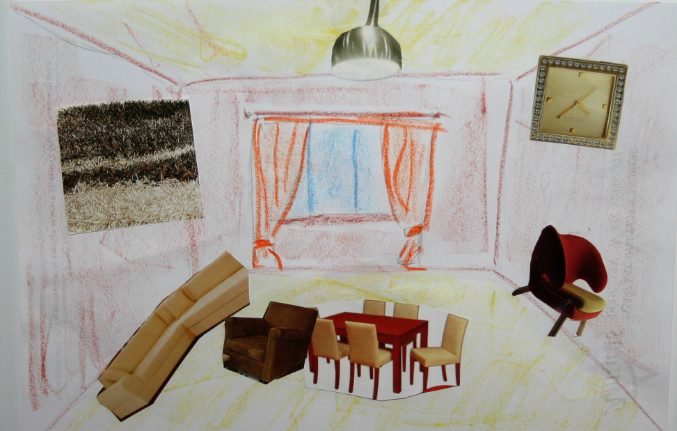 Делали комнату. Всю мебель дочь приклеила сама.Просила я только ковер на пол положить:)) но дочь повесила на стену:)