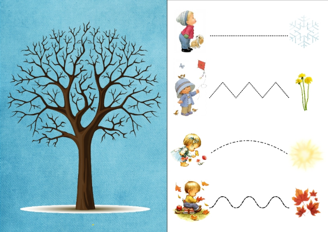 Картинку с деревом, заламинировала, планирую лепить на нее пластилиновый снег, листочки, изображать дождик, солнышко и др.