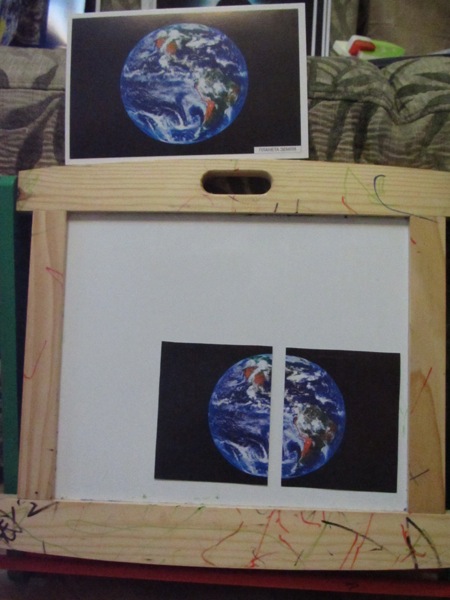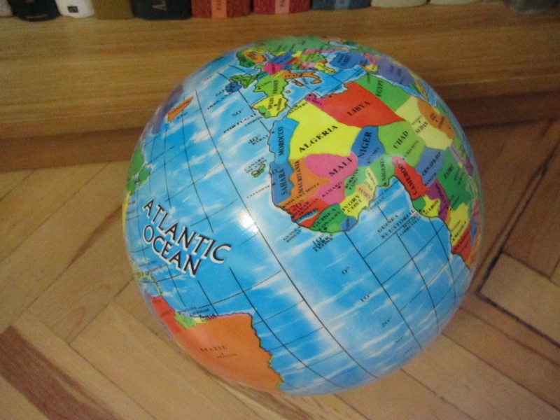 С наступлением весны, энергии стало у сына в разы больше, сидеть на месте он практически не может, так что в перерывах между заданиями дома мы играли с мячом. Мяч у нас тоже непростой, а это наша планета Земля))))