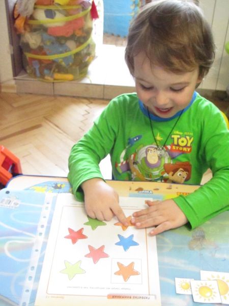 Хоть можно сказать, что само занятие провалилось почти с треском. Занятие началось позже обычного, Дети были совершенно не в духе, и не хотели заниматься, так что проделав несколько заданий, кружок я нас свернула, дабы не вызвать совсем негатив с их стороны своим нажимом. Расстроилась сначала конечно, но потом поняла, что растраиваться глупо, это дети и они в праве быть в плохом настроении и не хотеть заниматься, и что настаивать тут абсолютно нельзя, так как от этого будет только хуже. Но на следующий день мы со Степкой позанимались вдвоем, так что отчет будет так сказать за два дня.