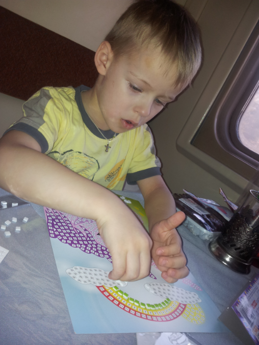 Ну и конечно очередной набор аппликации по цифрам. В дороге они у нас просто на УРА!