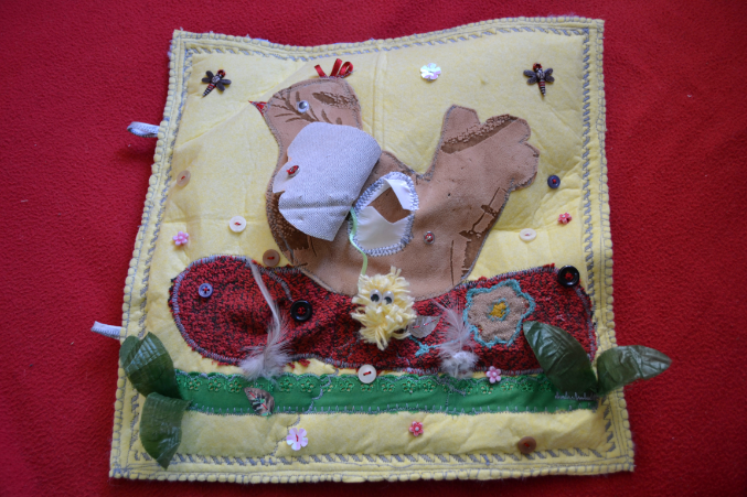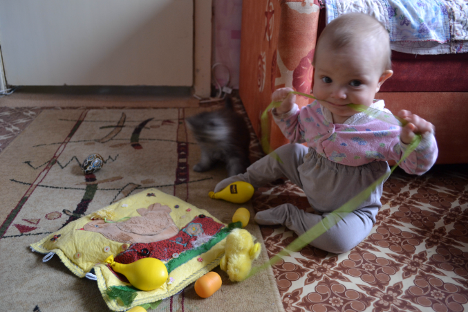 со страничкой из мягкой книжки (эту книжку я сама шила еще во время беременности, вот, начала пригождаться),