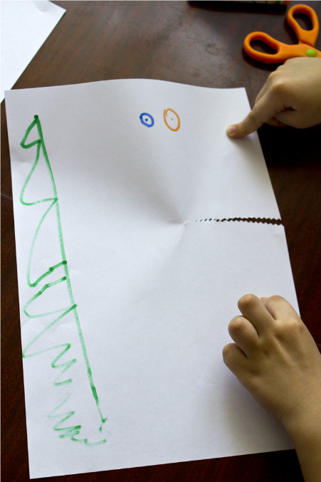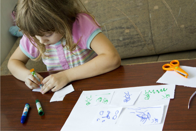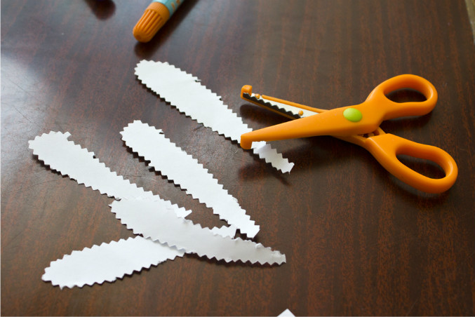 Сделали галерею картин. Нам понадобилась бумага, фломастеры, фигурные ножницы и клей ПВА. Вырезали фигурными ножницами квадратики разные - это картины. Нарисовали на них рисунки и приклеили на стену (белый лист бумаги)