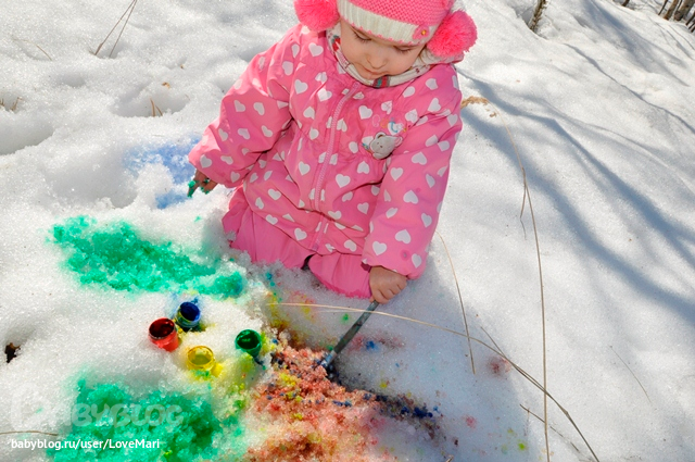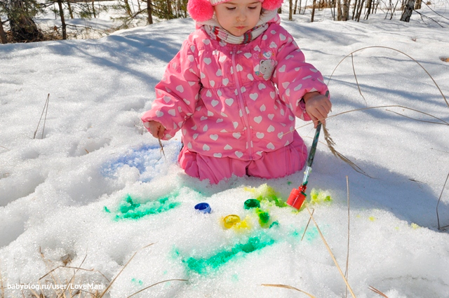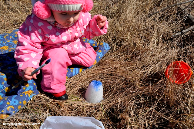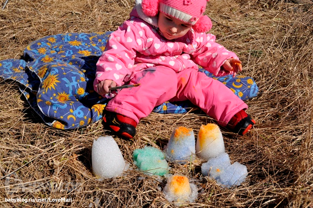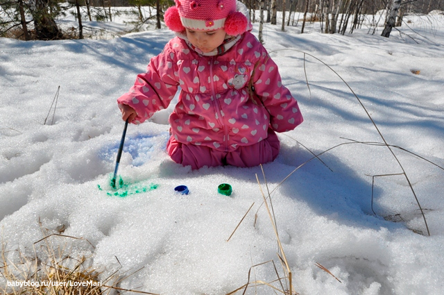 Потом перебрались на уже нагревшуюся от солнца проталину и продолжили свое творчество на траве