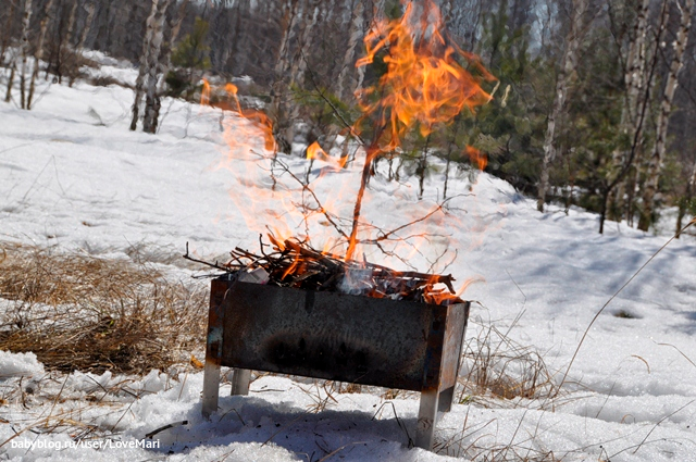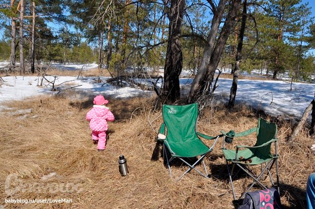 Достали походные стулья, любимый термос с горячим чаем и наслаждались, нежась на солнышке весенним выходным) Дочке рассказала про проталины, вместо песка лепили с ней куличи из снега и собирали прошлогодние шишки)