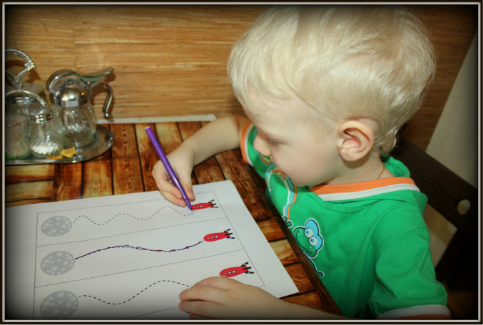 После были его любимые "бумажные занятия". Соединялки, проводилки и прочее.