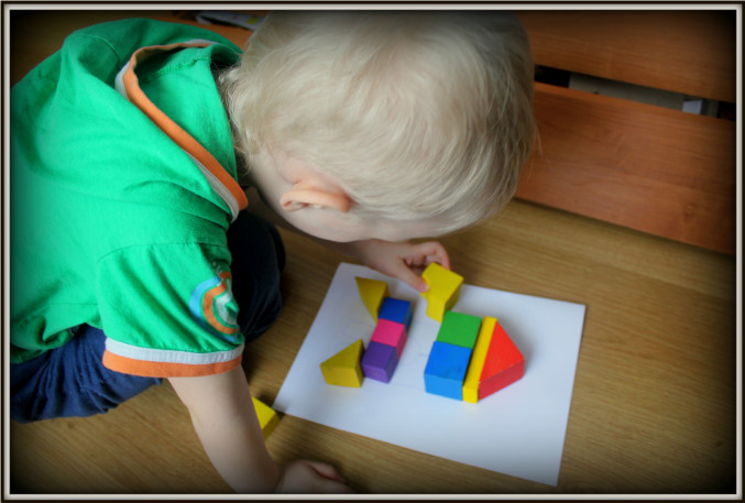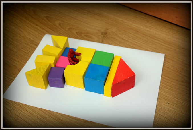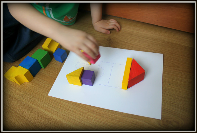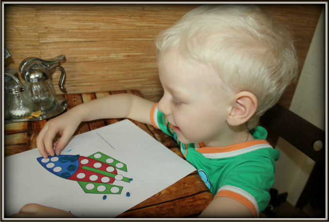 И собирали модель из кубиков. Андрюшке нужно было по нарисованному образцу выложить ракету.