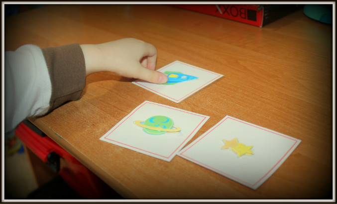 Затем мы подбирали объёмные фигурки к изображениям на карточках. Не сложно, но увлекательно)