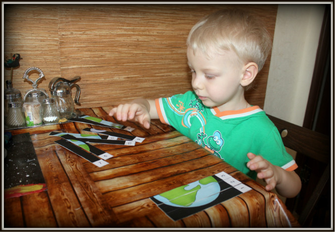 Собирали пазл. Части пронумерованы, заодно повторили счёт.