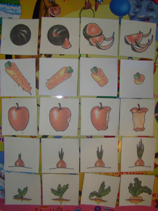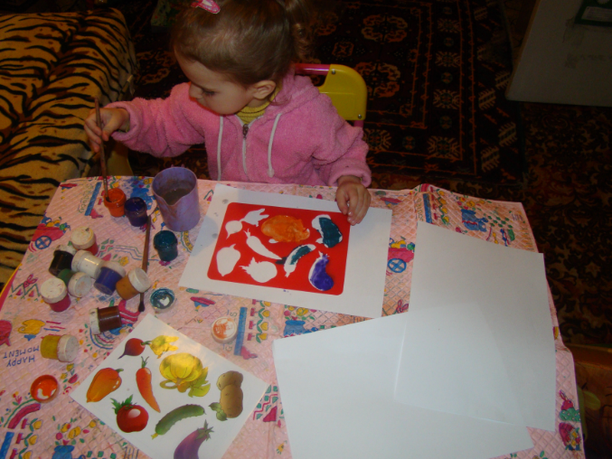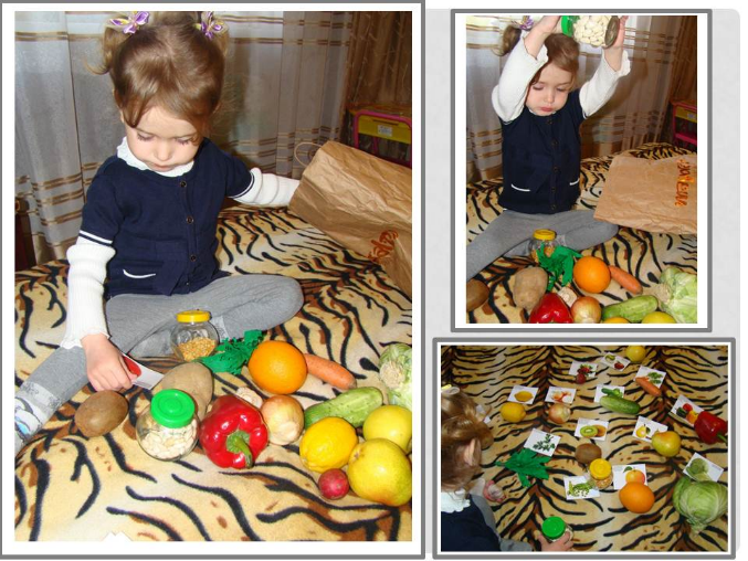 Конечно, большинство фруктов и овощей мы знали и раньше, но эти знания были какими-то уж очень обобщенными, поэтому во время ТН я хотела ей показать, чем отличаются фрукты от овощей: как растут, что из них можно готовить и т.п.
