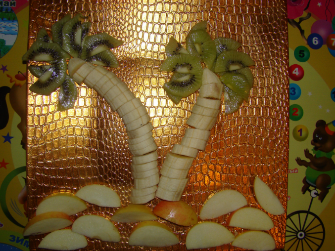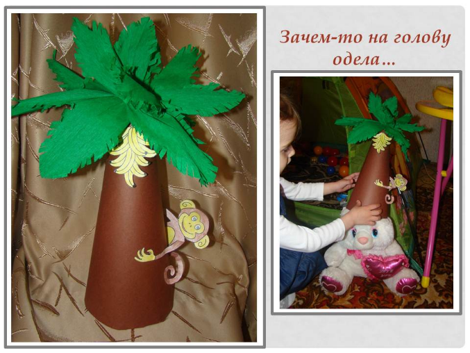 3. А здесь ни сколько Дашино творчество, а скорее мамино, но Даше понравилось, поняли, что бананы растут на пальмах и являются любимым лакомством обезьянок: