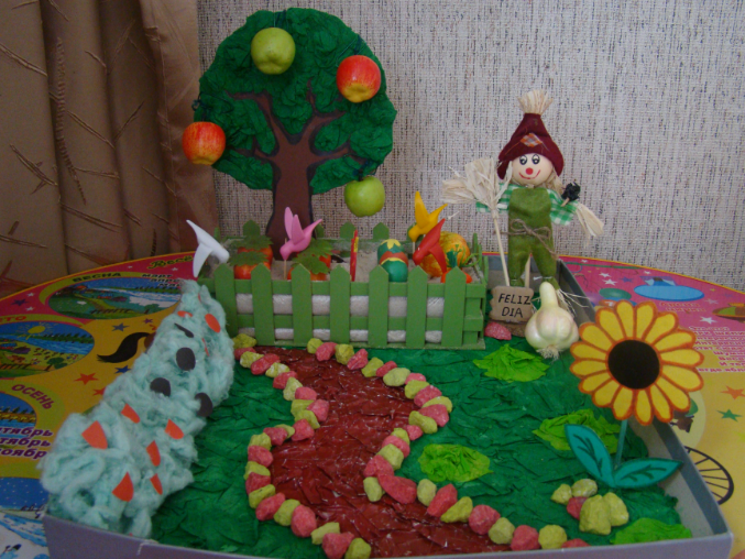Ради недельки сделала для Даши такую тематическую коробочку (фрукты – на дереве, овощи и клубника на грядке, ягоды – на кустах):