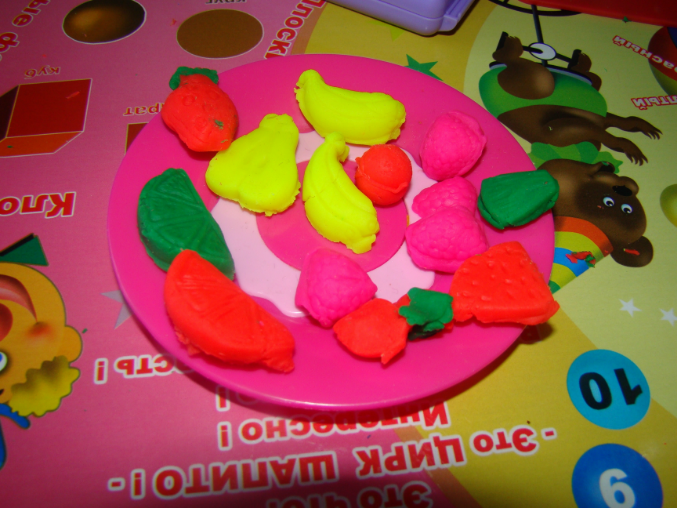 7. И немного поиграли с настоящими овощами и фруктами: