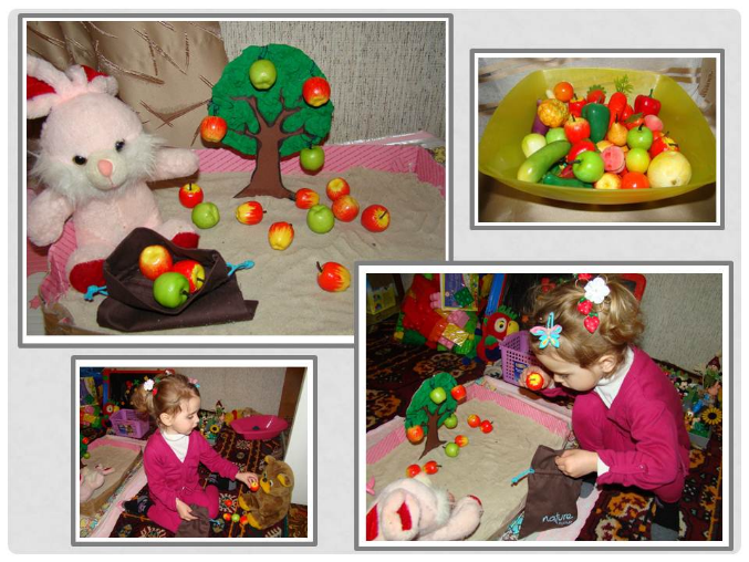 3. Еще играли в игру «Мешок яблок» по сюжету одноименного мультфильма. Порадовалась.