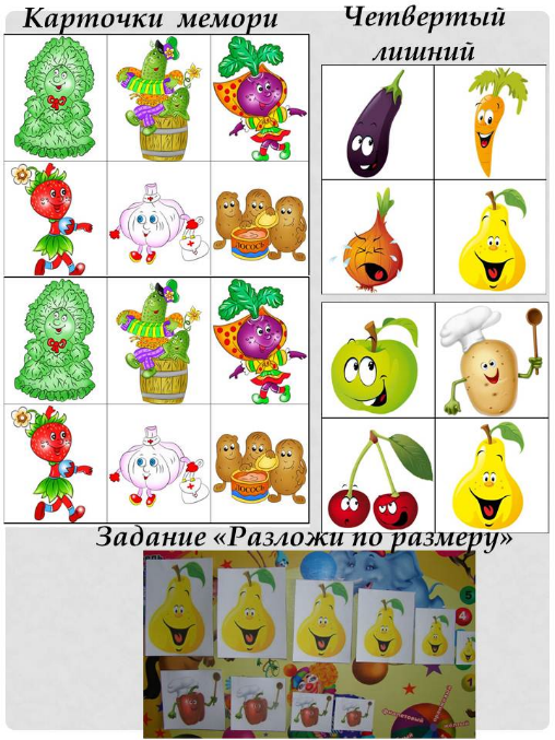 Б) Разложи по размеру, карточки мемори, задание "Четвертый лишний":