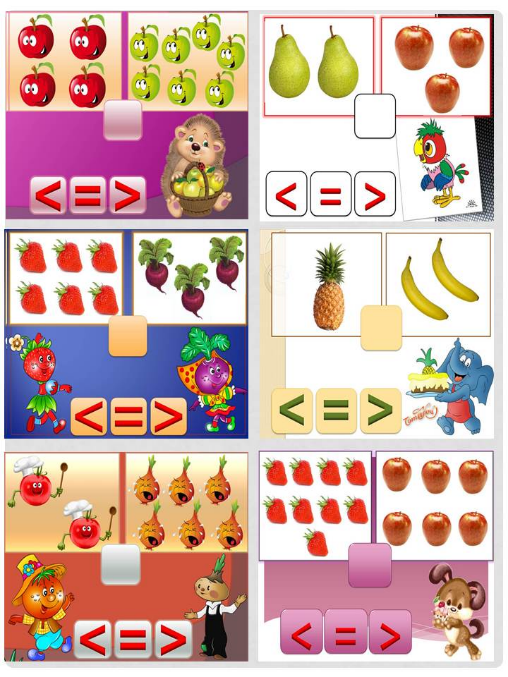 Е) Сейчас мы перешли к новому этапу в изучении математики – сравнение множеств (>, < , =). Поэтому были задания на эту тему.