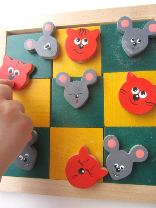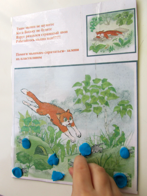Непослушные мыши разбудили спящего кота Ваську, норка всего одна по-этому нужно быстрее спрятать мышек от коварного кота. Для более весело игры, я читала сыну стихотворение.