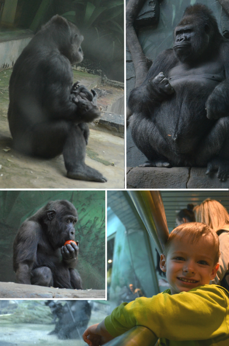 Ну и последними любимцами на этот раз стало семейство горилл. Мы как раз попали к ним на обед....Раньше я кстати видела только отца семейства, остальные в открытый вольер не выходили. Как все-таки они на нас похожи... Они даже, когда огурцы едят попки от них выкидывают... я была удивлена)))