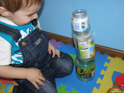 Тёма оч любит заниматься этим делом и ему не составило труда найти и закрутить необходимую крышку на банку)))