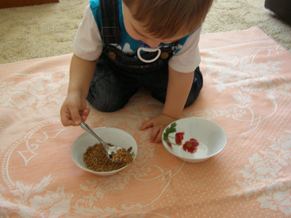 4. А потом мы просто пересыпали гречку из одной миски в другую