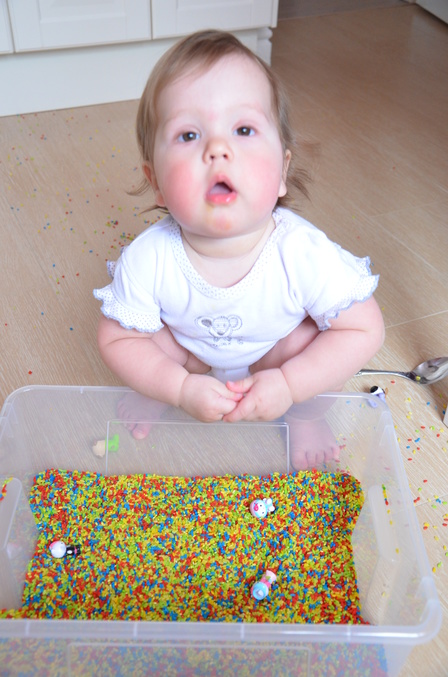 Дочке 11 мес, все тянет в рот. В голове не укладывается как с рисом ей давать играть? У Вашей дочки был такой период? С какого возраста она начала искать предметы в рисе и играть с ним свободно?