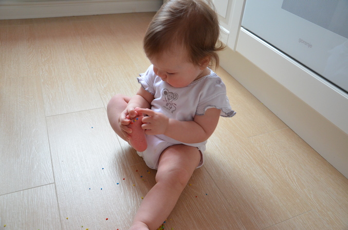 Я не стала высыпать всё в общую ёмкость сразу, а дала Ладе время посмотреть на цвета в отдельности и попробовать их посмешивать самой)