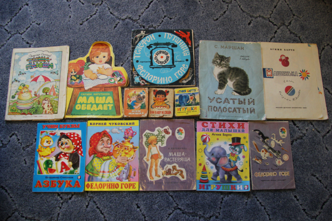 Была еще куча очень любимых круглых книжек с погремушкой-шариком, но их уже все убрали за ненадобностью.