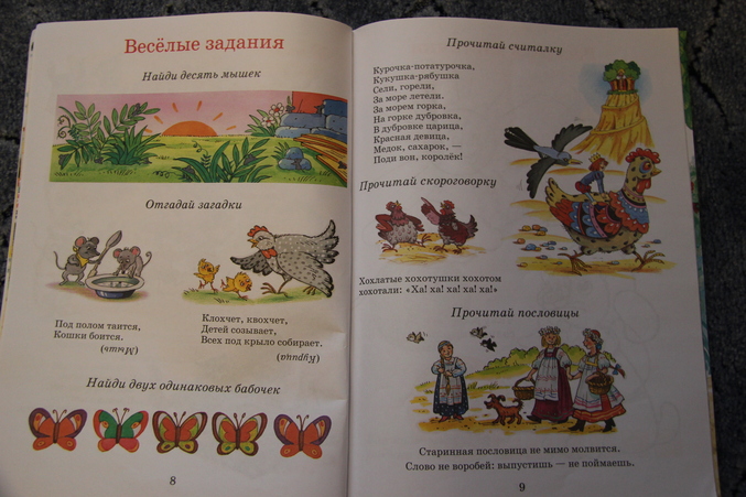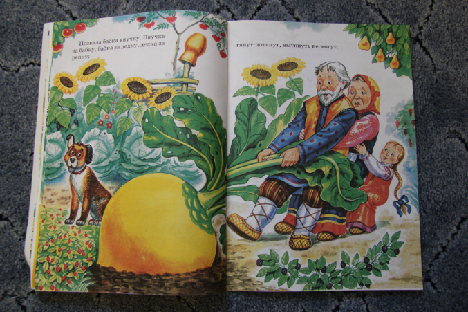 а у нас мастхэв сначала обкатался на книжке-картонке из моего детства - причем там все тексты написаны скопом на разворотах под обложками, а все остальные страницы - исключительно иллюстрации (и вот как читать? пришлось все наизусть выучить)))