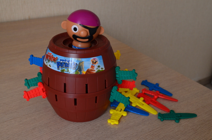 Нам ее подарили, сама вряд ли бы купила. Сначала Мишка вообще никакого интереса не проявлял и строил из кинжалов ракеты, корабли и самовары. Но сейчас играем по правилам, чем больше народа, тем веселее. Я, правда, все время боюсь , что пират этот Михе в лоб прилетит, но пока Бог миловал). Возраст 4 года явно завышен, с 3 - смело можно играть, но недолго, потому что быстро надоедает, все-таки достаточно однотипно). Зато эта игра отлично тренирует умение ждать своего хода, потому соблазн быстре воткнуть свой кинжал и выманить пирата велик)