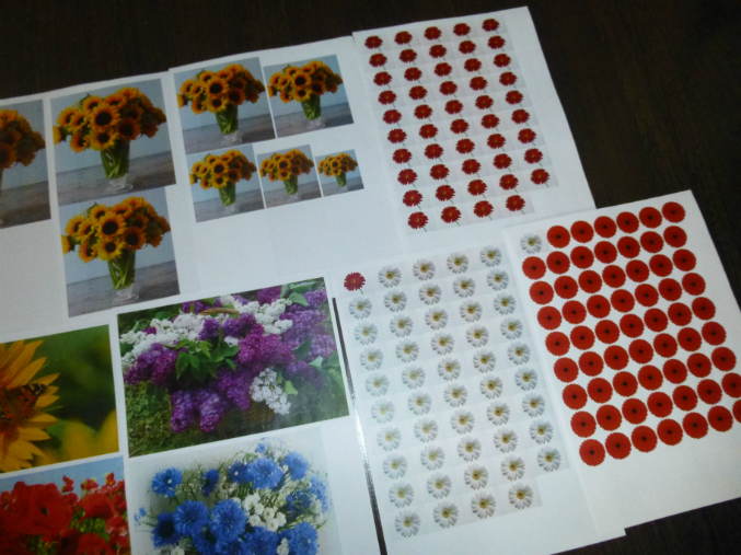 Подсолнухи-разложить от большего к меньшему,картины для пазлов и герберы-счетый материал))