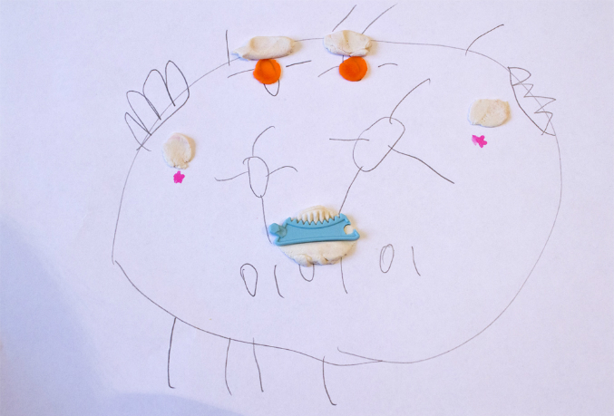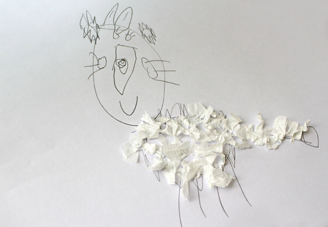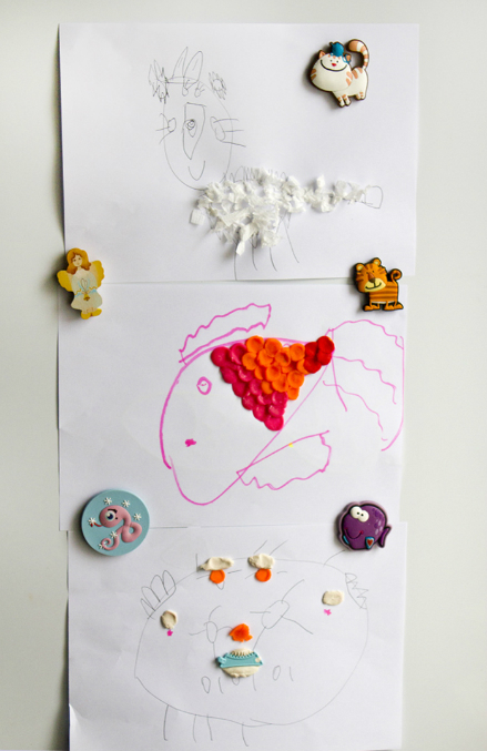 Мистер Умелец или Очумелые ручки (поделки, аппликации, интересные находки, идеи и задумки)То, что натворили, показываем папе. Сегодня для папы у нас вот что: кот пушистый с шерсткой из мятых салфеток, рыбка золотая с чешуйками из массы для лепки, чудик зубастый с бровями.