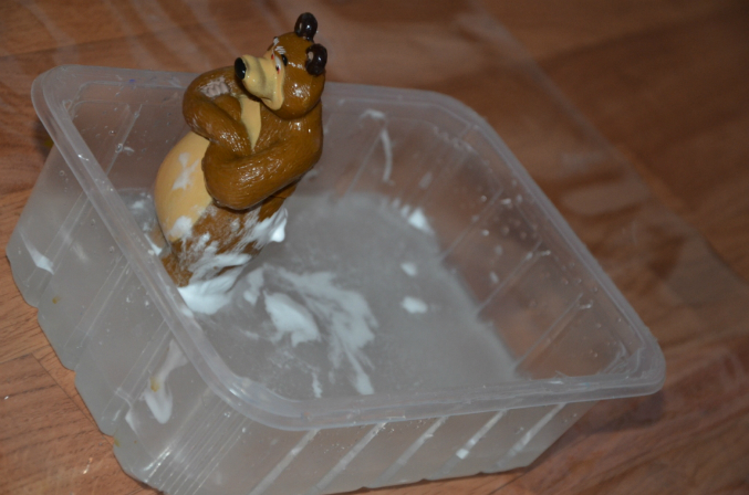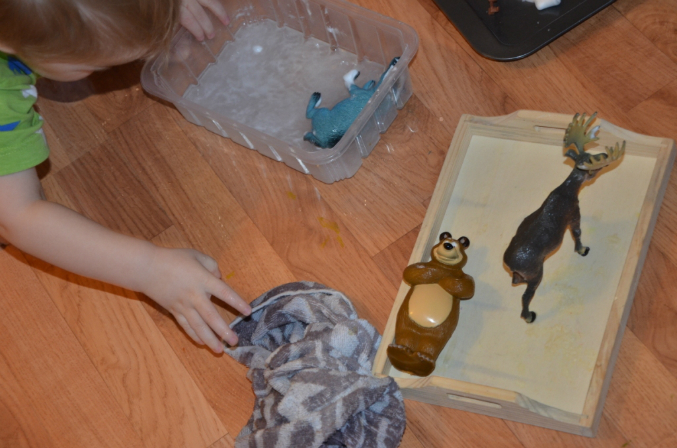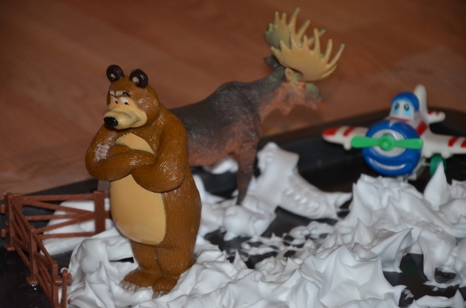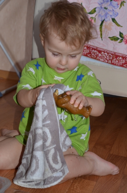 Сначала сын отнесся недоверчиво, не хотел даже дотрагиваться, но когда я замарала медведя, сын с криком У Ми попа гава(грязная), взялся за дело....))))