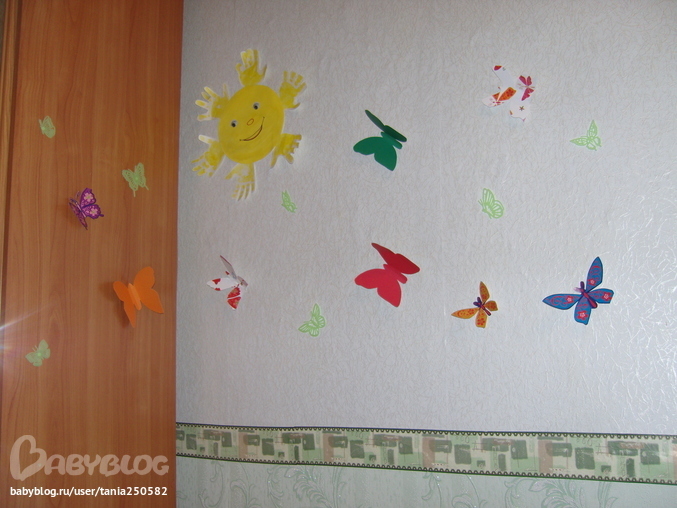 Здорово! Бабочки очень украшают, я на ДР дочки тоже бабоче вырезала и на стены клеила, но я вырезала не из картона а из цветных пластиковых папок-кармашков. комната получилось такой милой девчачьей)))