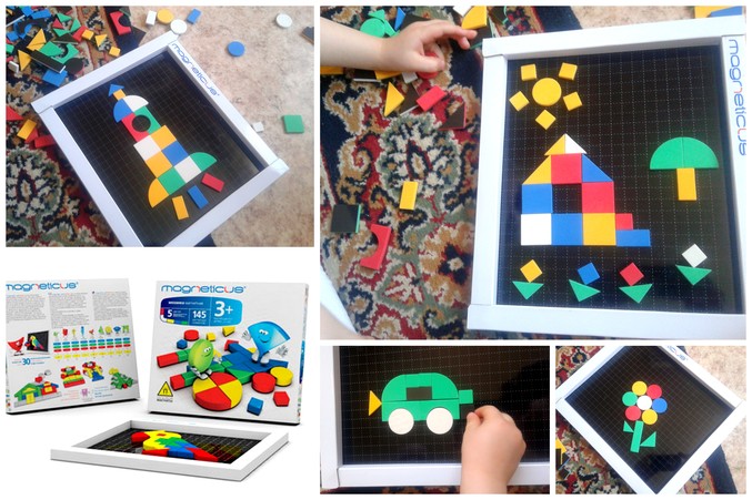 мы с тобой прямо ноздря в ноздрю)))))я вот только-только купила вот такую!(магн доска у нас была )- http://www.labirint.ru/games/368986/ просто суперрр!!!сидит-что-то придумывает,собирает по цвету...ед НО-почти нет кругов (человечков сложно делать)...одни треугольники,да прямоугольники....