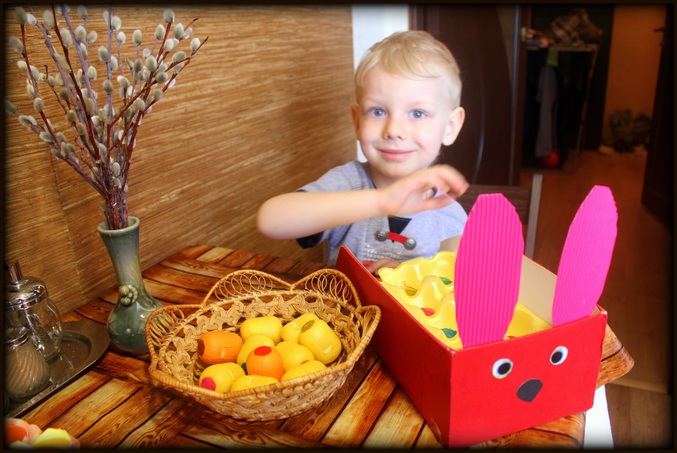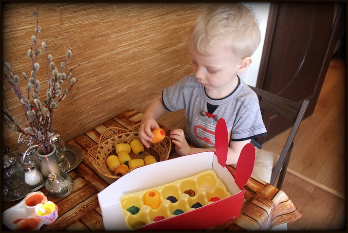 Праздник к нам пришел (Игры в День Рожденья, Новый год, 8 марта и.т.д.. А так же чем занять нескольПервые майские праздники мы провели в гостях, и сам праздник Светлой Пасхи тоже. Ходили святить куличи в тот самый храм, где крестили Андрюшку в 3-хмесячном возрасте. И освящал праздничные угощения в этот день тот же самый батюшка, что и крестил, совсем молодой, но очень приятный. И хотя день был пасмурный и накрапывал дождь, видимо радостное настроение всех людей витало в воздухе, и нам тоже оно передалось)) Но это уже было после. А пока мы были дома, перед отъездом успели немного познакомиться с предстоящим событием и позанимались на эту тему.