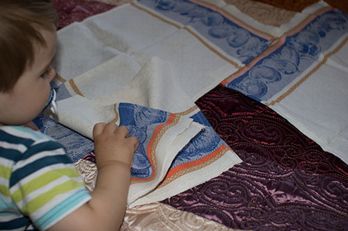 Завершили занятия складыванием салфеток, точнее мама складывала, а Тёма раскидывал))