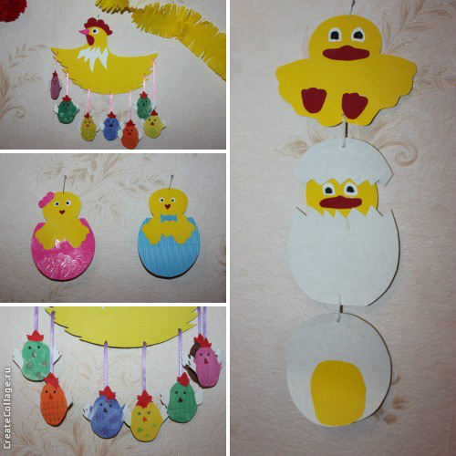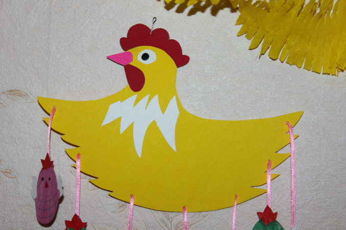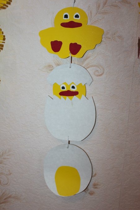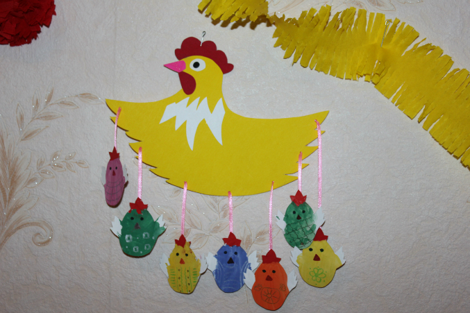 Вот и все, что мы успели. Хотелось гораздо больше, но не получилось. Так что висят теперь наши курочки с цыплятками на стенке, а малышастик их снимать не дает. Говорит:"Пусть будет праздник!" Так что у нас праздник пока еще продолжается!!!!!!