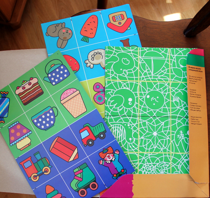 Оказалось - кубики уже отлично идут! Сын с удовольствием выкладывал дорожки (первое задание в прилагающейся брошюре) и, по моему предложению, складывал их все белой стороной вверх в коробку. Заодно сам придумал построить одноцветную дорожку и несколько небольших башен. В общем, ура! И хватит ещё очень надолго - там на кубиках разные узоры, из них дальше предлагается складывать довольно сложные картинки, да и самим потом можно сочинять - муж вчера с удовольствием поигрался в них уже :)